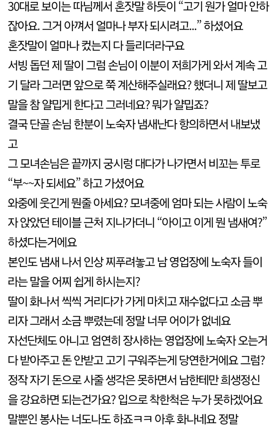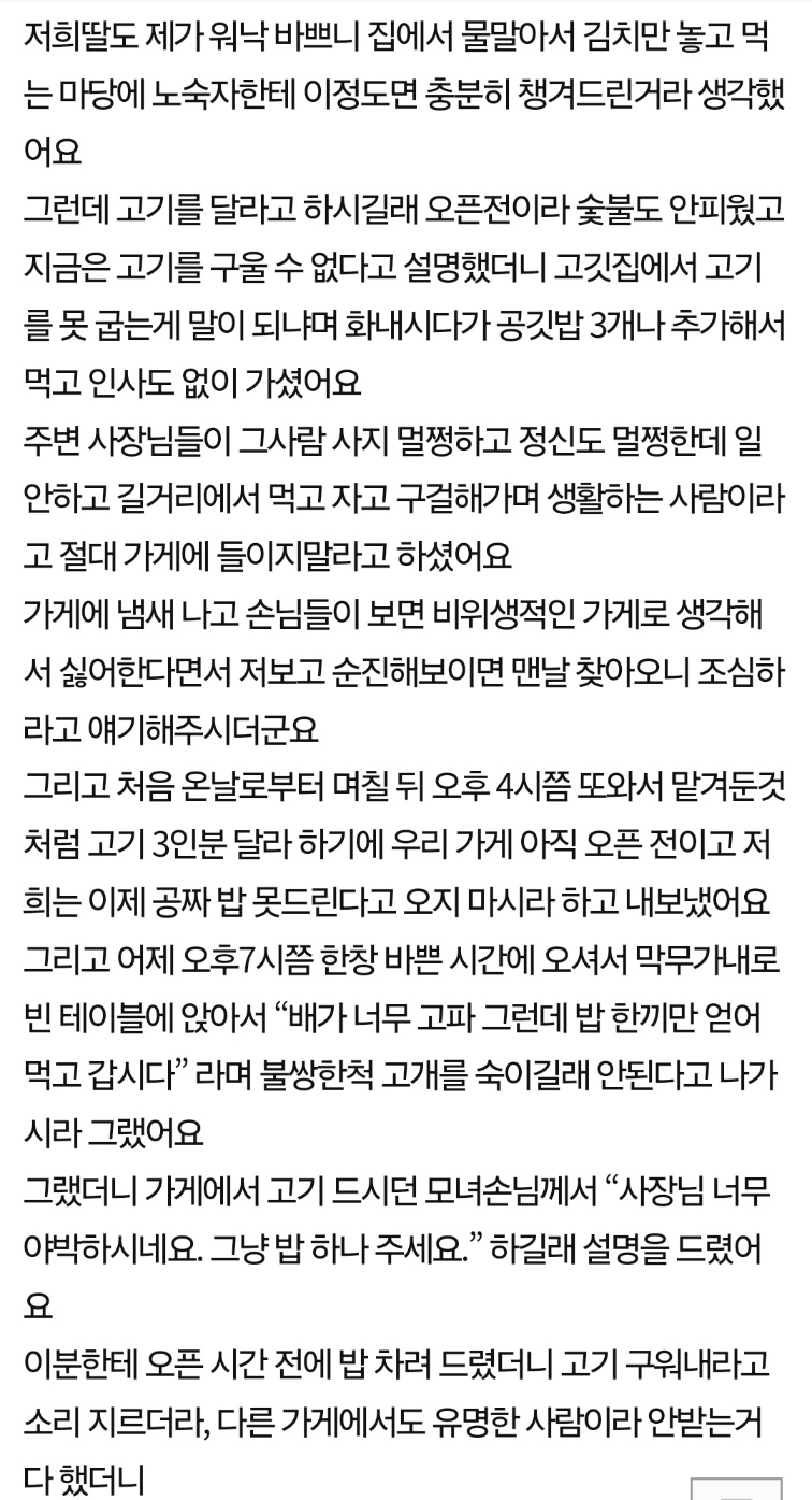 노숙자에게 공짜 밥 안주는 식당이 야박한가요?
